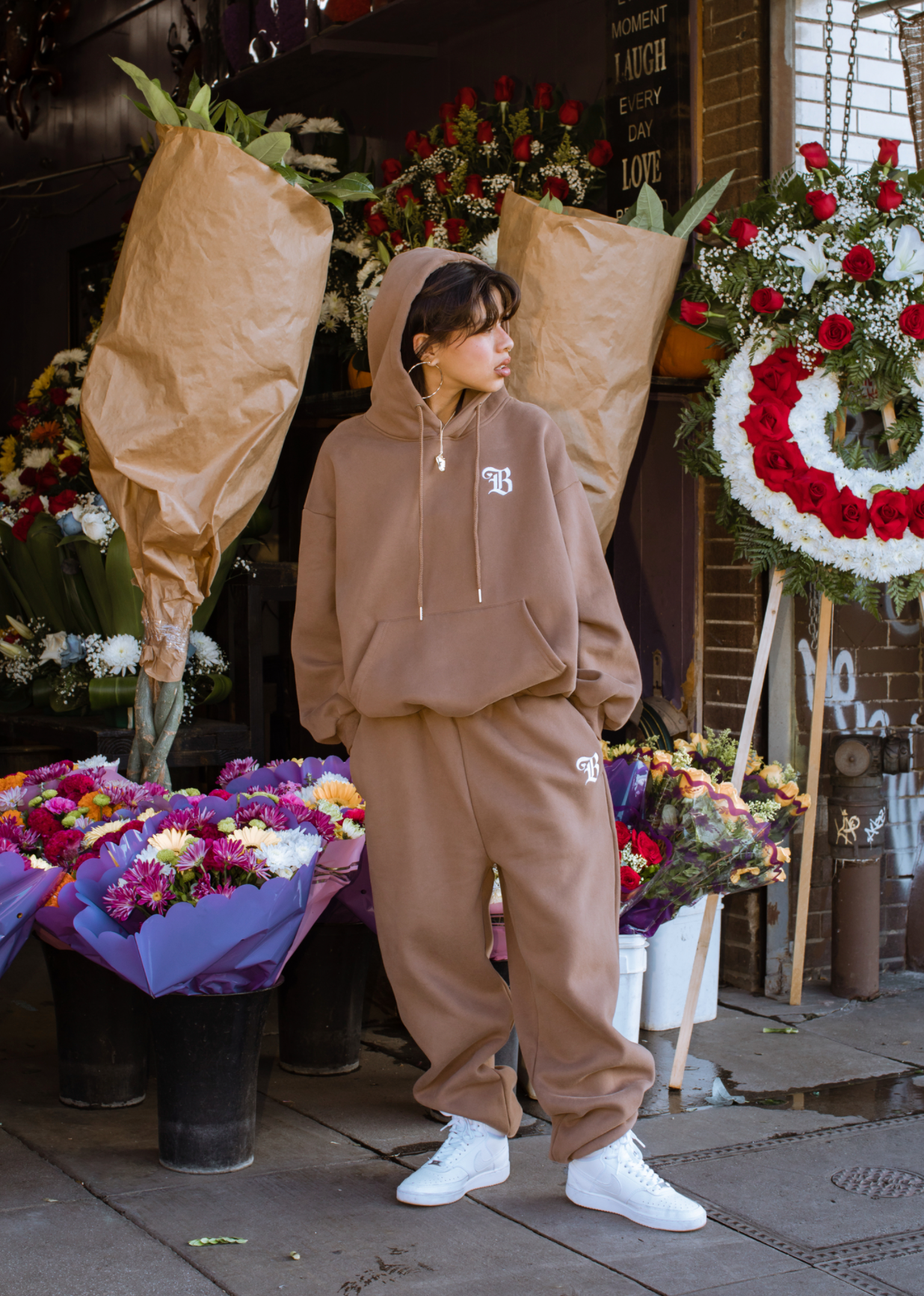 Sooo much love went in to making this sweat suit, we had to drop a lil heart on our B logo to show you! This look has an extra baggy fit.