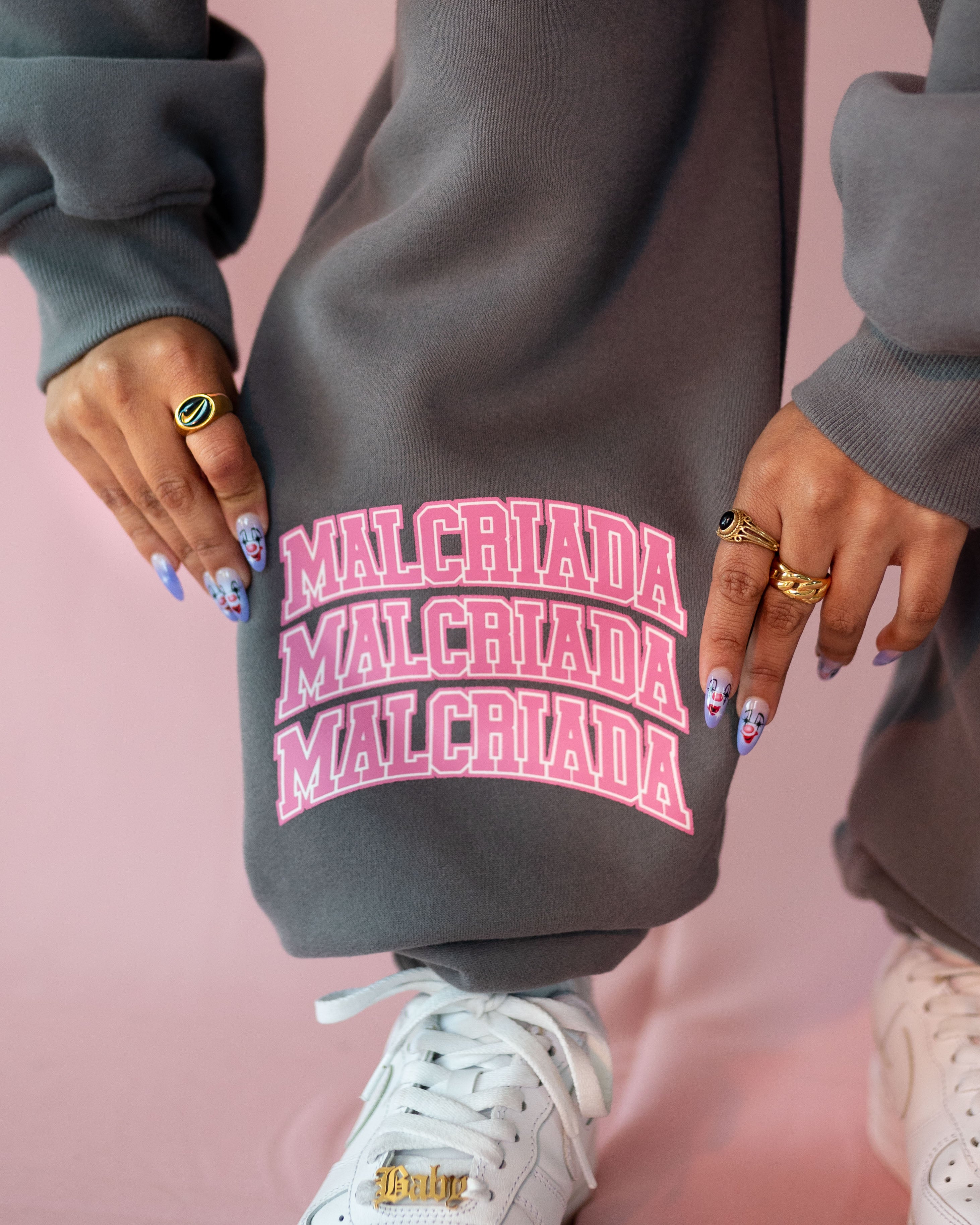 Stay cute & spoilt in our latest Malcriada Varsity Sweats! Show them off solo or pair them with the matching Malcriada Varsity Sweater. We customized these sweats to have a baggy fit, so size down if you like your look a little more fitted.