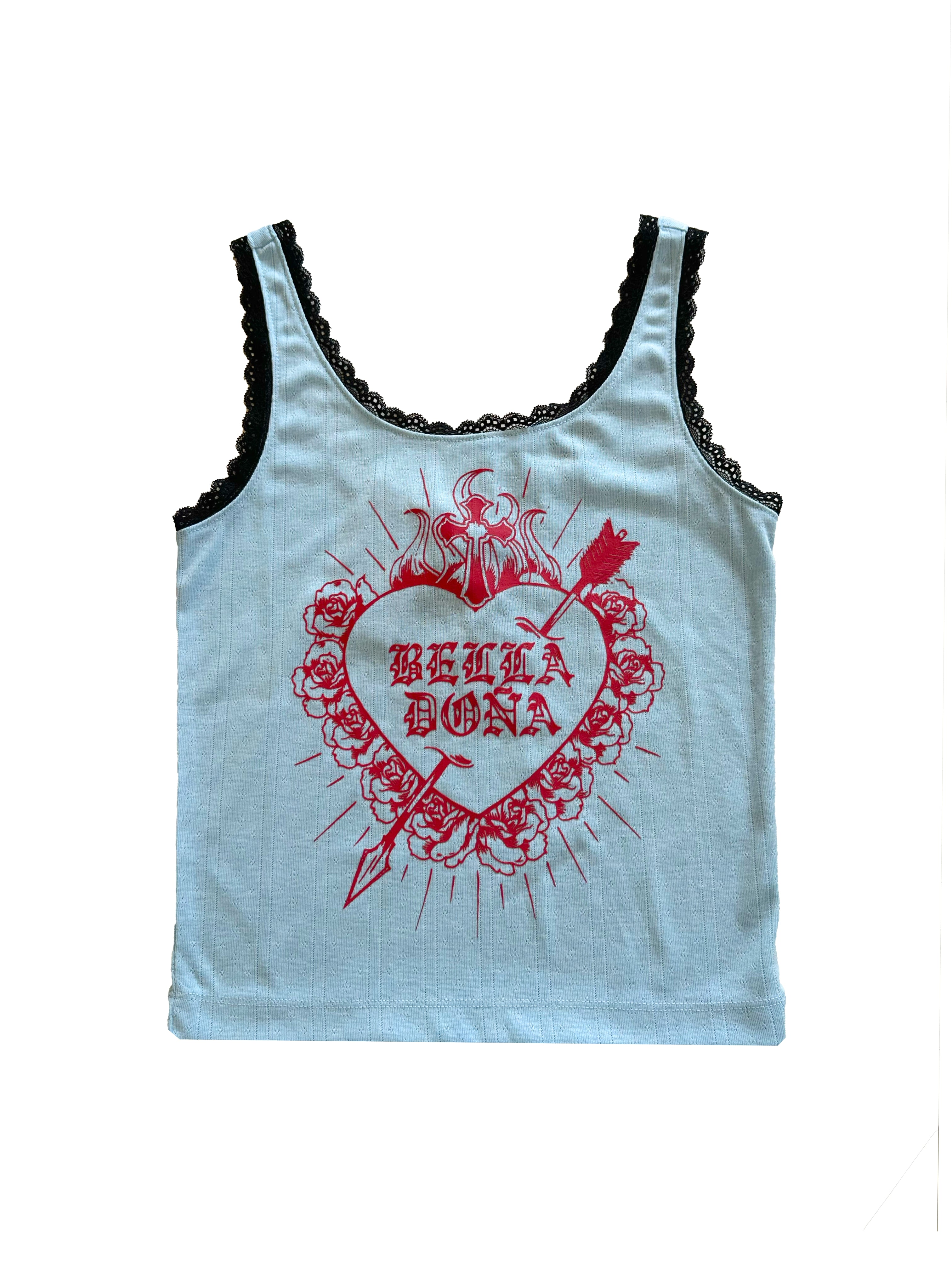 The perfect summer tank is here!! Our Sacred Heart Tank features our signature Bella Doña Sacred Heart design, complete with delicate lace trim on a pointelle tank and an adjustable tie-back detail. Soft, feminine, and full of corazón, this piece is perfect for layering or wearing solo with your favorite denim or khaki shorts!