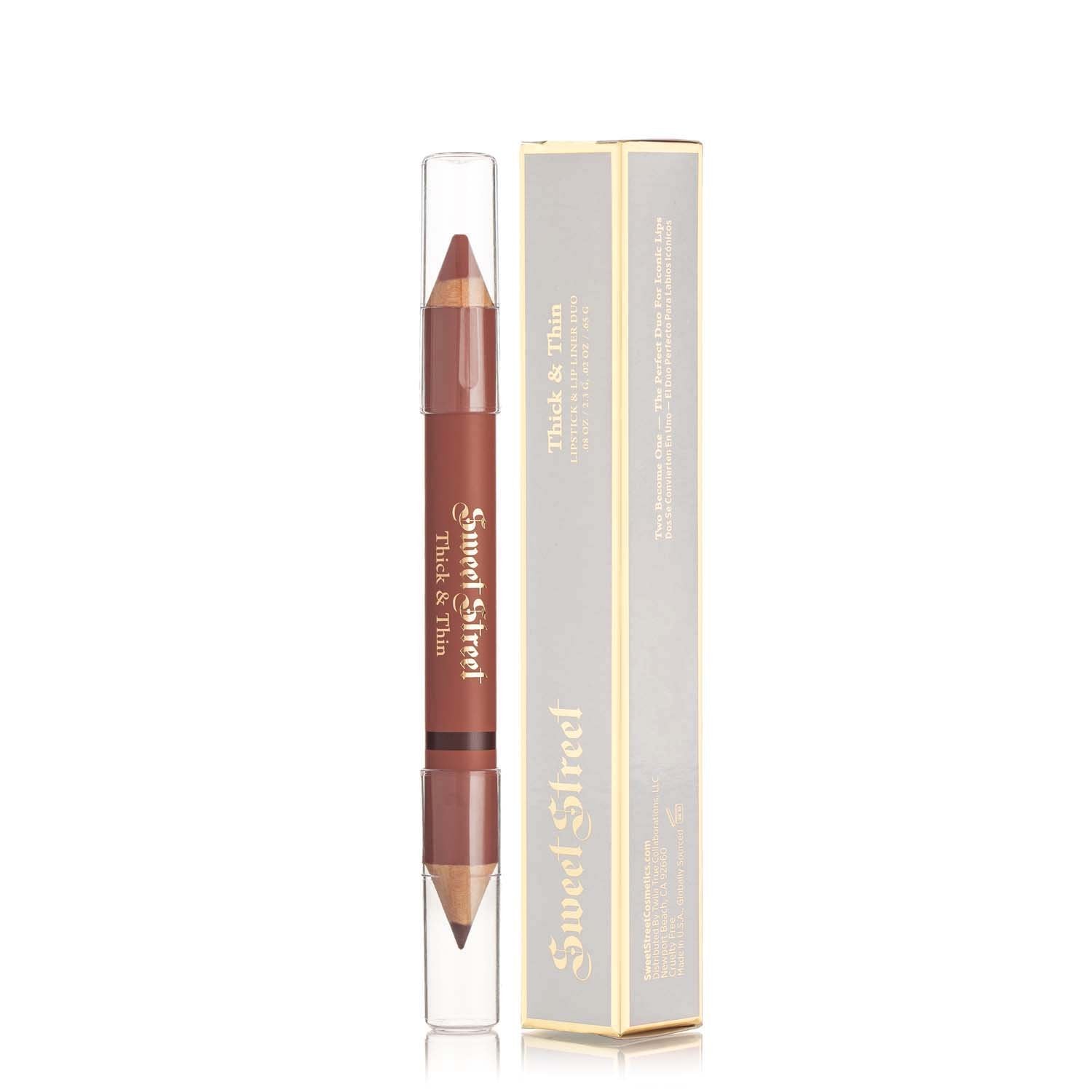 Double the depth and definition with Thick & Thin Lipstick and Liner duo. Define, enhance, and shape your lips for an intense and creamy pop of color. The thin point outlines with deep pigment and smooth precision while the thick end saturates your lips with a coordinated, satiny color. Enriched with moisture-rich Shea Butter and Vitamin E to hydrate lips while you look glam.