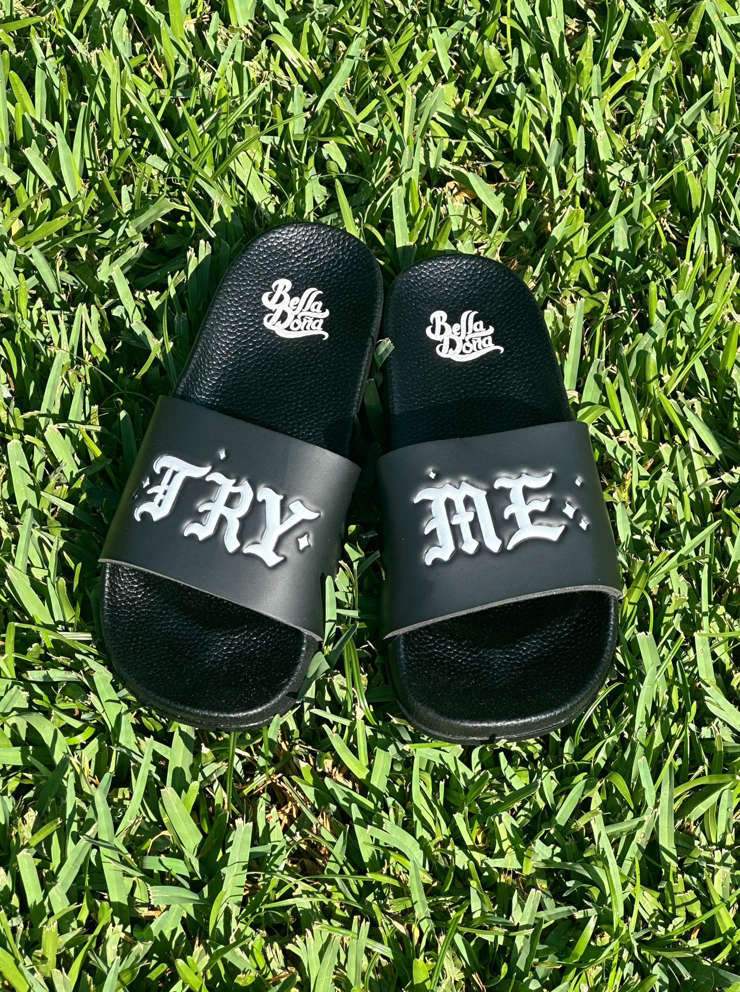 Pull up and let 'em know, Homegirls!! Our Try Me slides have super soft bottoms and a comfy fit, perfect for ya daily looks!!
