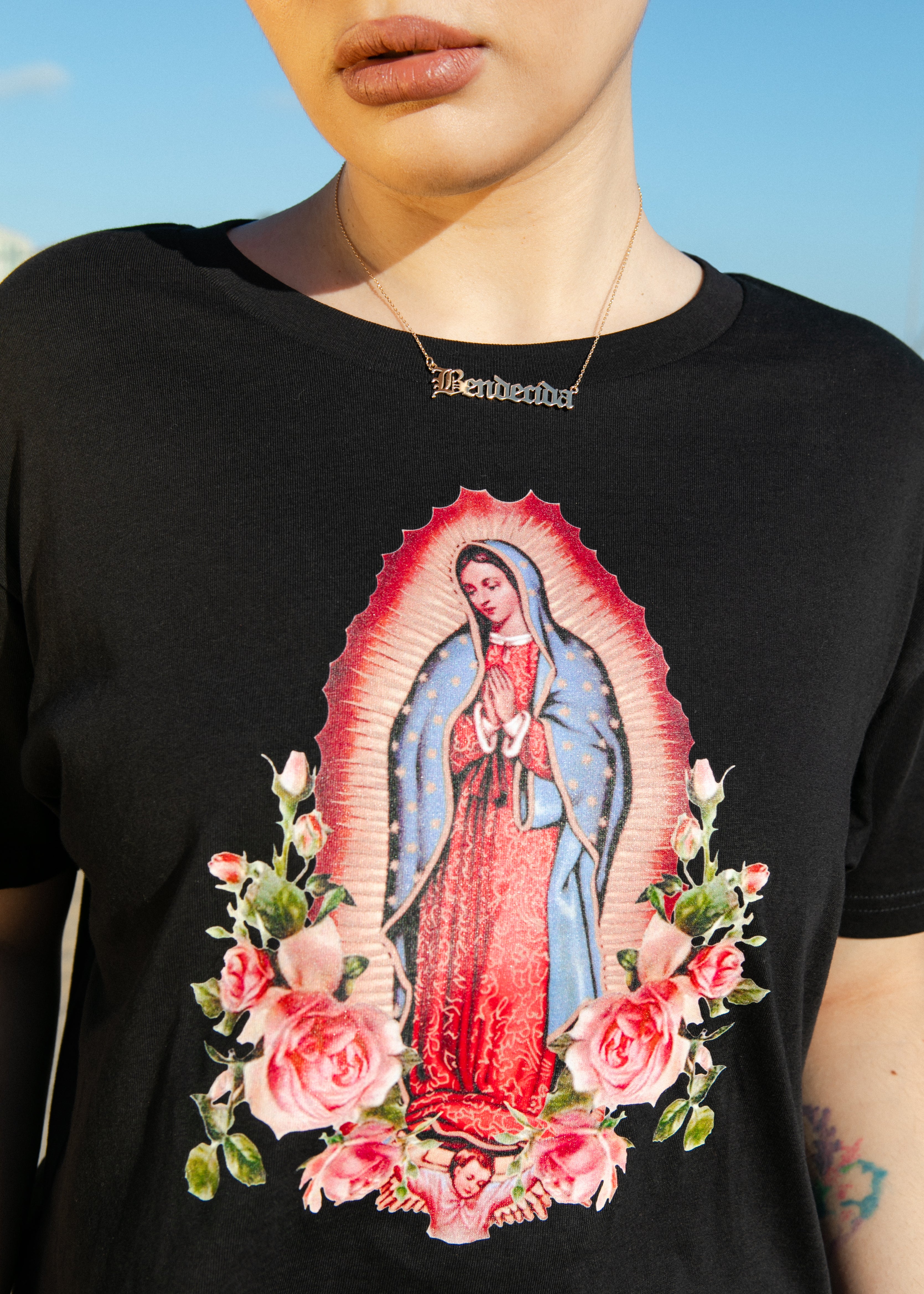 Stay blessed x protected in our new Virgencita crop tee! No matter how you choose to style her, she's got your back!