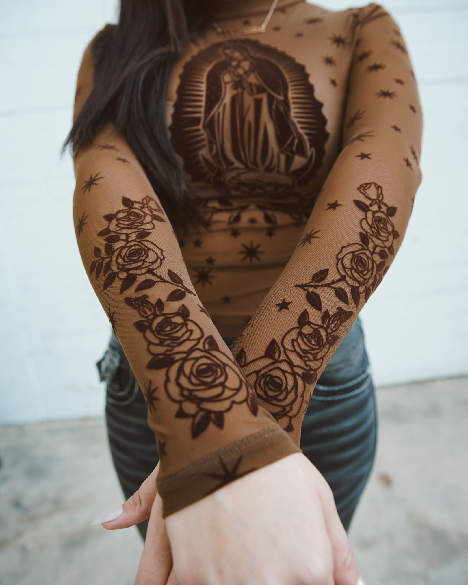 Virgencita Mesh Top - Brown